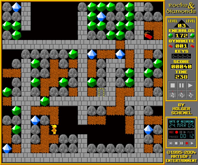 Rocks 'n' Diamonds can be downloaded below. I would recommend to download the level structure as well (to avoid one big messy level directory). Read about it in the 'Levels' section. Beware that the game is constantly in development, so regularly check out this section!